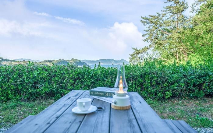 여수오션독채펜션[32평]-客厅有桉树的淡淡香气,可以看到日出和大海