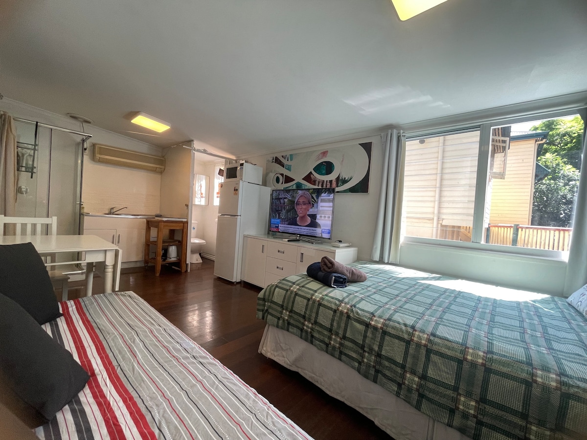 Enjoy afternoon breezes and tree top views from the spacious deck of this unique, romantic Queensland home and garden- an oasis in the city. Superb location-minutes walk from Southbank Parklands, Convention Centre, West End, CBD, Mater Hospital, Gabba. Seperate entry to the renovated worker's cottage (1890), top floor. We may be occupying the downstairs level. Annie offers a home with comfort, ambience, and cleanliness, with respect for your privacy, and any assistance you may need.