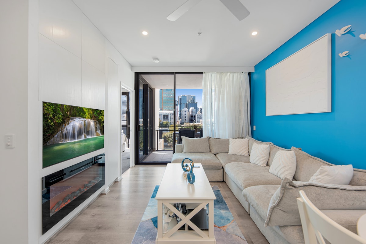 Enjoy panoramic Brisbane River + Mountain views , framed by floor-to-ceiling windows and natural light, in this stylish 2-bed, 2-bath apartment. Featuring a spacious open-plan layout, thoughtfully designed interiors, and a private parking space, it’s ideal for couples, small families, or business travelers. Just minutes to Queen Street Mall, South Bank Parklands, top dining, cafés, and cultural attractions, with easy access to public transport—perfect for short or extended stays.