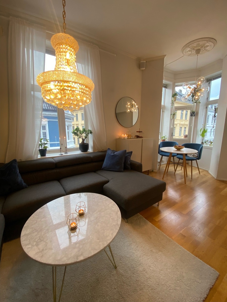 Welcome to the historic Bergen house, dating back to around 1780, located in the charming Sandviken area just a stone's throw from the bustling city center among local residents. You'll have the entire house to yourself, complete with a cozy outdoor terrace. The property is secluded from street noise, tucked away in a small alley. Its convenient location offers easy access to supermarkets, a bus stop, hiking trails, and city bike parking. Additionally, you can find paid street parking nearby.