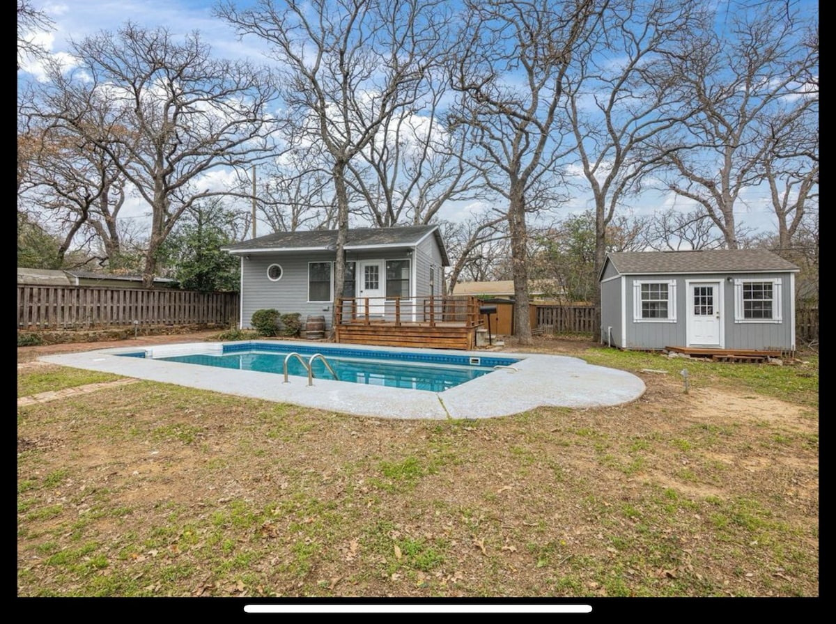Relax beneath a grove of pecan trees in this peaceful hideaway near I-20 and I-35. Drive 15 minutes to downtown or west 7th, 10 minutes to Magnolia Ave, and 20 minutes to the Stockyards. Professionally designed and renovated, the home includes a large, fully stocked kitchen with a reverse osmosis-filtered water tap and complimentary tea and coffee bar. End your day with a campfire and s'mores under the string lights and flowering vines in the backyard.