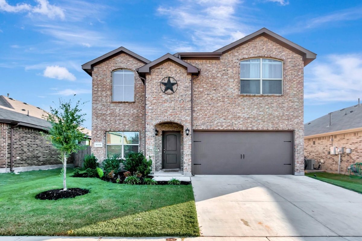 This is the perfect home for a big group. It is located in a new and safe neighborhood. Bring the entire family, friends, or coworkers to enjoy this beautiful area of Fort Worth. Play with the kids in our large fenced backyard or hang out with your group on the back patio. If you're wanting to be indoors, we have Four TVs with Netflix, HULU, and Amazon Prime for binge worthy TV and movies.