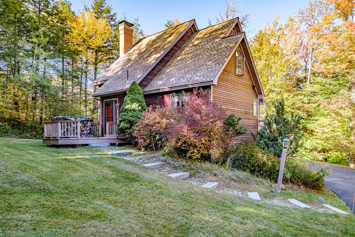 Welcome to the Mad Moose Lodge! Year-round adventures begin at this 2-bed, 2.5-bath Stoneham chalet. This vacation rental provides incredible fall foliage views and easy access to mountains and lakes! Close by to cross-country skiing and snowshoeing in the winter and hiking, mountain biking, boating and swimming in the summer there are endless options of outdoor enjoyment. Enjoy stunning sunsets over the mountains from the comfort of the couch, or while enjoying a game of pool in the game room!