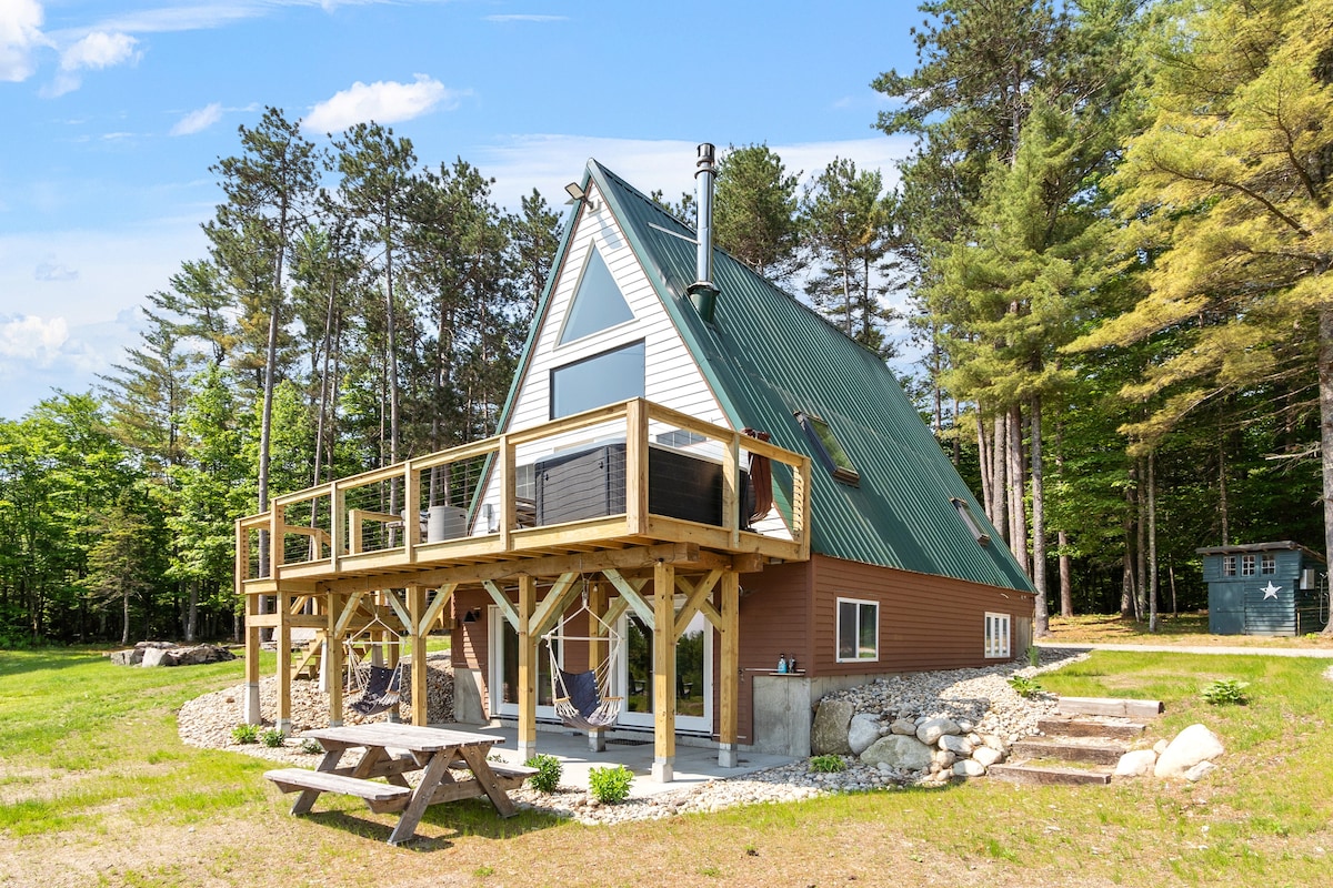 Escape to Camp Sweden, an eco-friendly waterfront sanctuary in the foothills of the White Mountains. Paddle across the private pond, go for a hike in the Mountains nearby, or jump in the new outdoor panoramic barrel sauna and let your worries evaporate away. Enjoy a unique and rejuvenating experience that connects you to nature without sacrificing comfort. This retreat offers all-season enjoyment for nature lovers and outdoor enthusiasts alike. Experience Maine’s beauty today