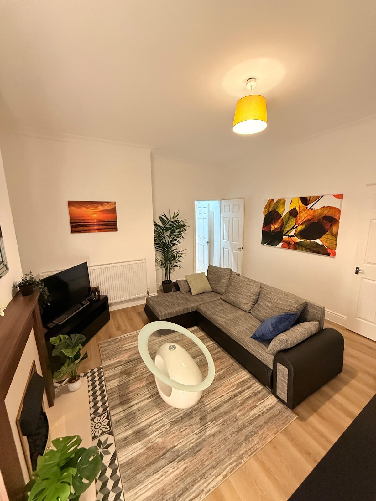 Vicky’s Haven, a stylish and comfortable home close to Roker Beach, Stadium of Light, Sunderland University, the City Centre, and the hospital. Just a short walk from the metro station, it’s ideal for students, families, and visitors looking for a peaceful stay in Sunderland. The house has king-size bed, double bed, single bed, and a detachable sofa bed, comfortably sleeping up to 5 guests. Enjoy a fully equipped kitchen, Smart TV, Wi-Fi, and park 24/7 cctv Charge per head and there is discount