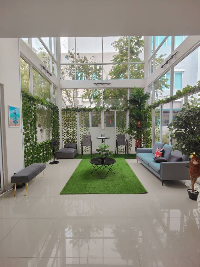 A lovely bungalow with a home setting residing in a quiet & lovely neighborhood. The house has 8 bedrooms and 8 attached bathrooms for every room. It also comes with a lovely garden and a beautiful greenery scenery and ample space to park up to 10 cars or 30 bikes. It has sufficient space to host a family or gatherings of almost 20 pax. More pax can be included upon request. Close by to lots of amazing food, a major hospital (Metro) and a water themed park.