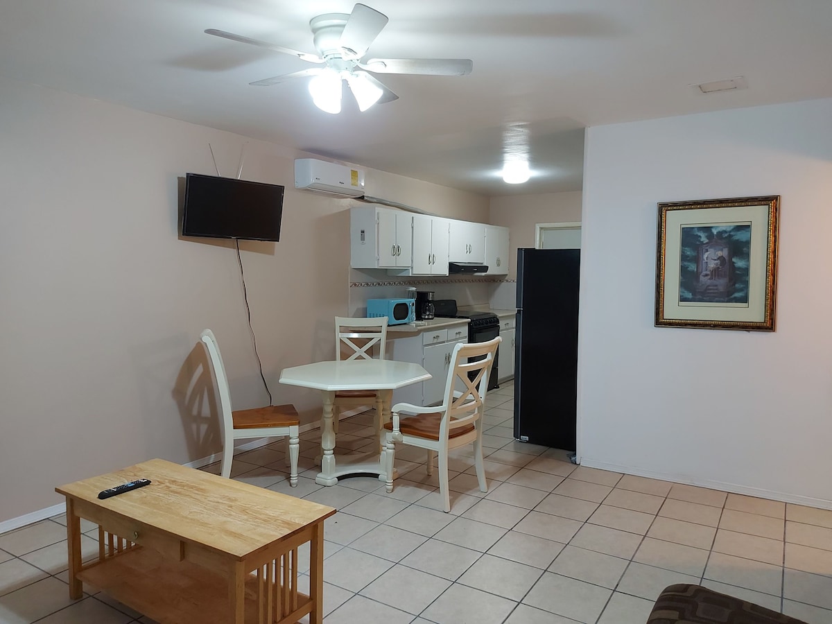 Please do not bring pets in the unit. This quaint apartment has everything you need and more!!! Great for long term or short term! The space is in a detached guest house, but has a private entry way and private patio. The room has a reading nook, kitchenette, futon, 2 TVs with local channels, and streaming services via fire stick. There is one designated guest parking spot or street parking can be used for multiple vehicles. Neighbor has an outdoor dog so some barking is expected.