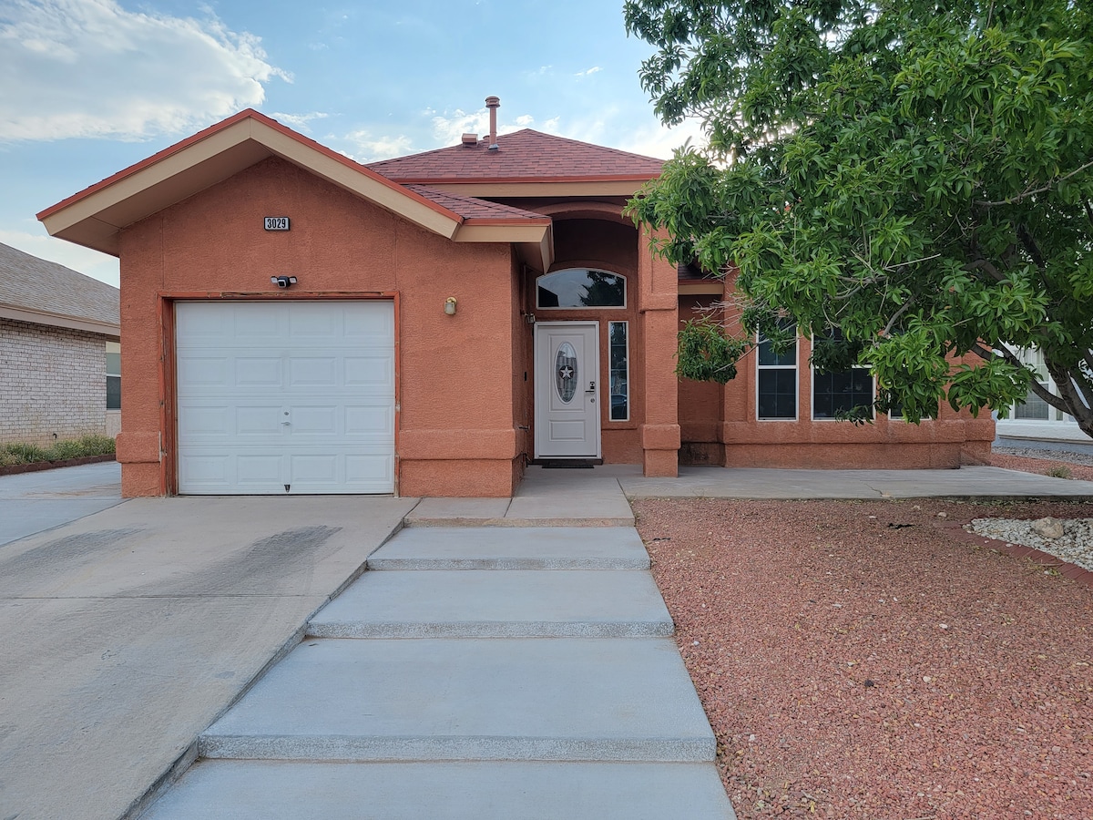 Located in a quiet neighborhood, just 25 minutes from El Paso Int'l Airport and 22 minutes to Fort Bliss, our home is perfect for military personnel, families, and travelers. Conveniently close to TX-375, Montana 62, and I-10, it offers a relaxing retreat with a luxurious spa jacuzzi, comfortable beds, a well-equipped kitchen, and complimentary Wi-Fi. Enjoy classic arcade games and a clean, well-maintained space designed for your comfort and convenience.