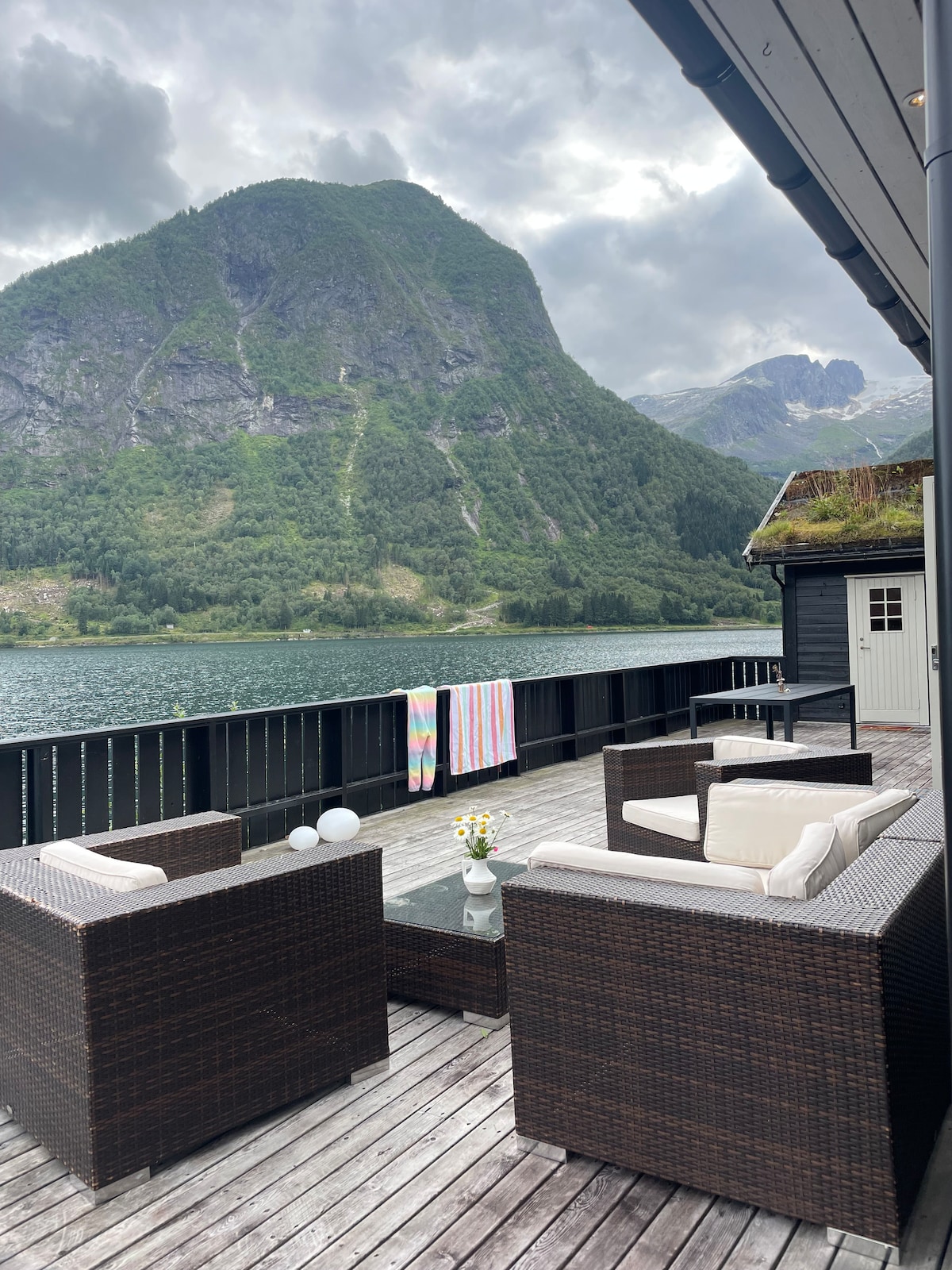 Velkommen til UTBLIKK Feriehytter i vakre Jølster! Bo i vannkanten med panoramautsikt over Jølstravatnet og de majestetiske fjellene i Kjøsnesfjorden – et ikonisk og mye fotografert landskap. Hytta er en perfekt base for aktiviteter året rundt, med en privat strand ideell for bading og fiske, samt flotte turområder både sommer og vinter. Båtutleie er tilgjengelig. Bygget i 2020, har den moderne fasiliteter, åtte sengeplasser, et fullt utstyrt kjøkken og uteområde med terrasse og bålpanne.