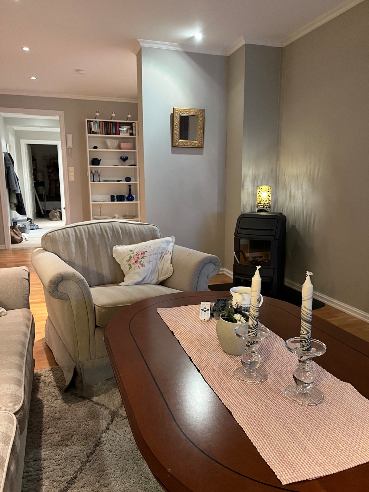 Del av duplex på aktivt gårdsbruk. Vi er tredje generasjon som driver gården etter at besteforeldrene til min ektemann fikk gården i bryllupsgave. Her får du bo i det originale gårdshuset fra ca 1950. Vi bor selv i den andre delen av boligen. Koselig sted, fullt møblert og med alt man trenger for kortere eller lengre opphold. Vi har 8 alpakka og mange geiter på gården, man kan bli med på stell på etterspørsel og om vi har mulighet i en travel hverdag da vi er i full jobb og har fire små barn.