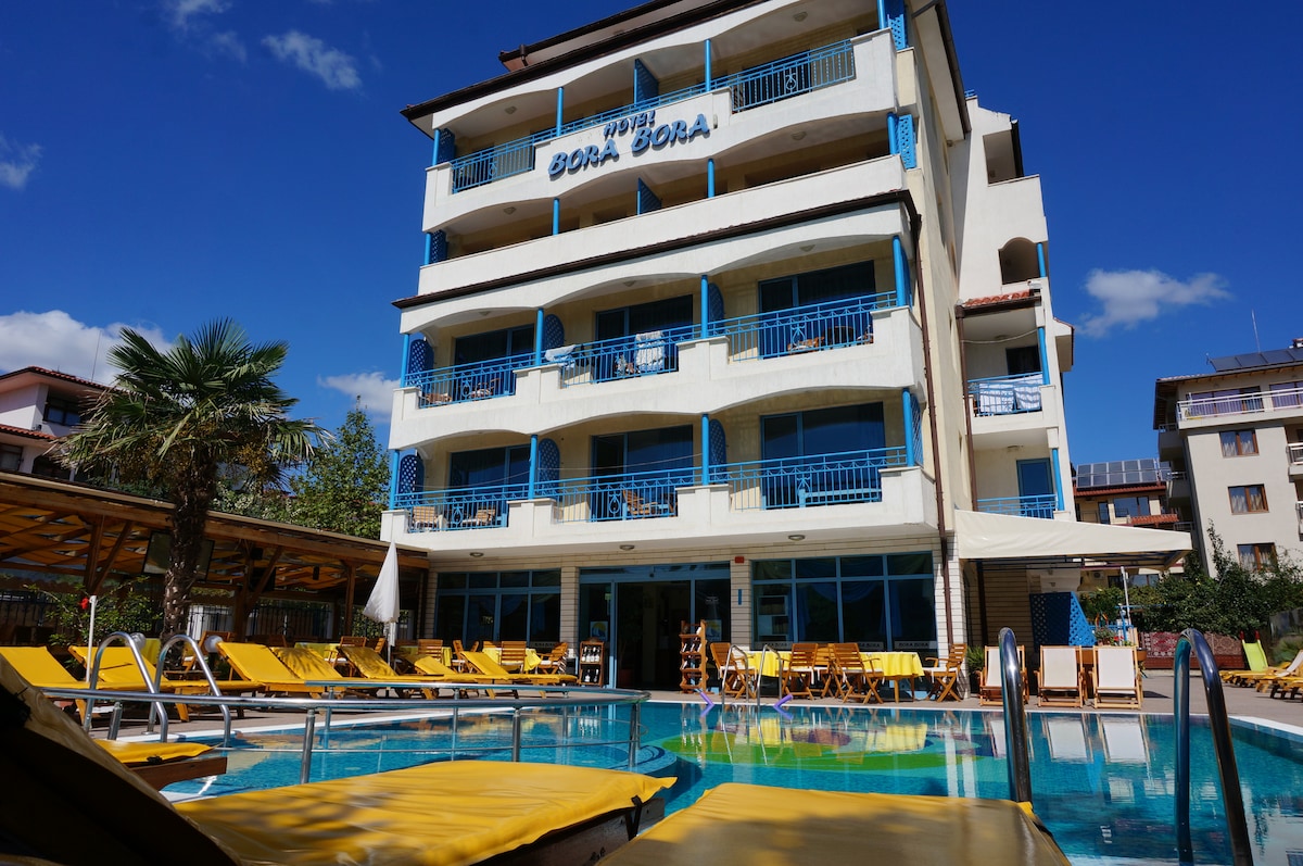 Room for 3-4 in central hotel in sunny beach, We have double rooms, superior triples, studios, one-bedroom suites, and full apartments. Send us a message with your dates