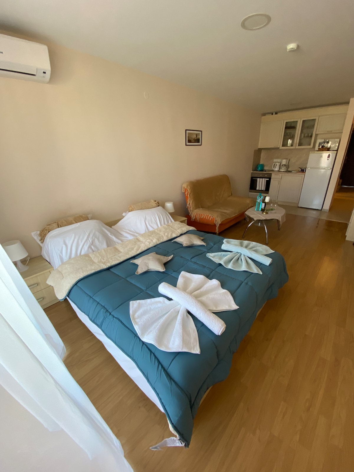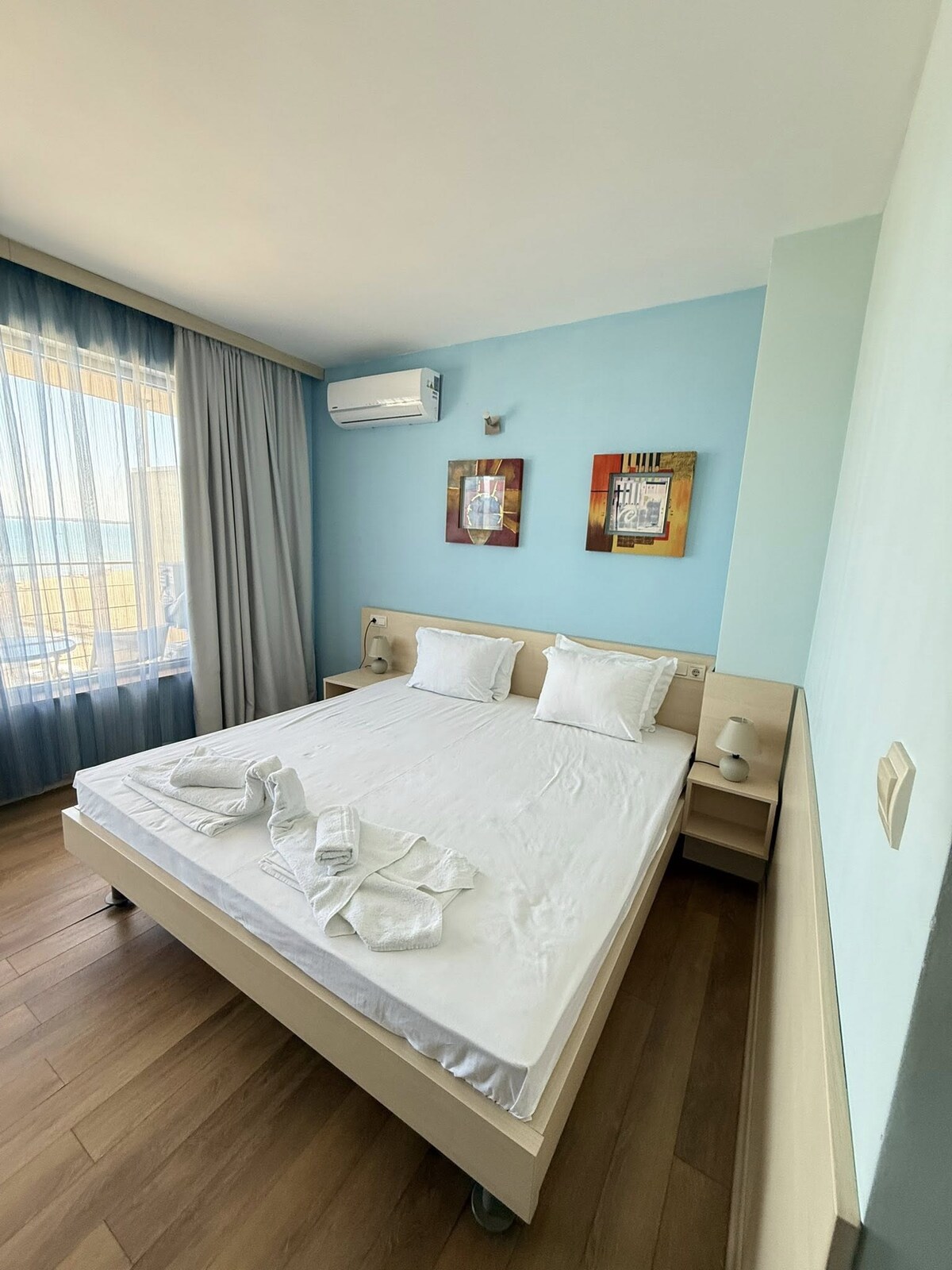 You won’t want to leave this charming, one-of-a-kind place. Welcome to your cozy studio at Sol e Mar Hotel – Chaika District! The perfect place for a relaxing seaside escape, just 400 meters from the long sandy beach and 700 meters from the aquapark. You'll be close to shops and restaurants, with convenient free parking nearby, making your stay both comfortable and effortless.