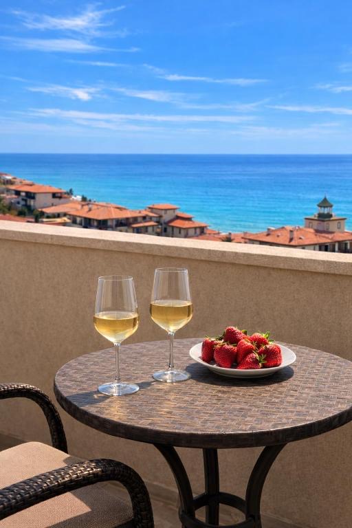 Sea Vista is a boutique 3 hotel just 300 m from the beach, overlooking the beautiful Sveti Vlas marina. It offers cozy rooms, most with sea view 🌊, an outdoor pool and a panoramic restaurant. Breakfast for 2 is included ☕. Perfect for couples and families seeking comfort, relaxation and a peaceful seaside stay.