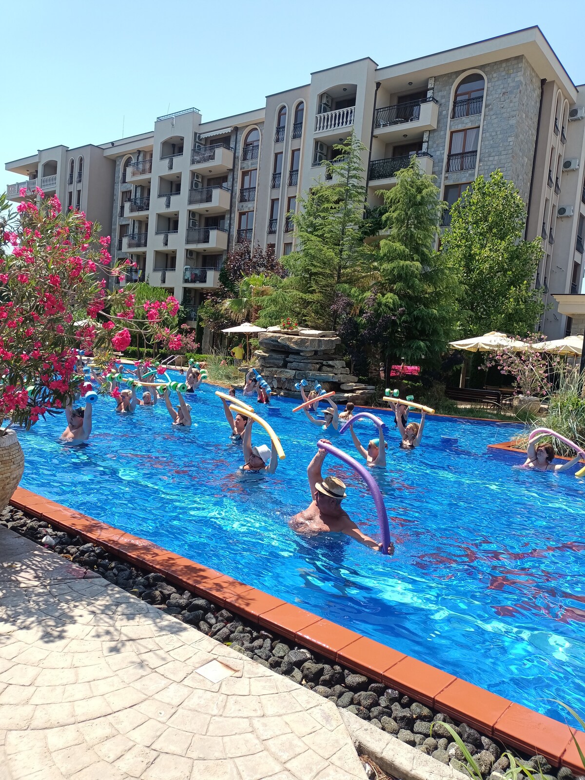 Jeden z najlepszych kompleksów w Słonecznym Brzegu. Ponad 10 basenów, mini aquaparki, animacje, koncerty na żywo, place zabaw, joga, fitness, siłownia, sauna, jacuzzi zewnętrzne. Polski transfer z lotniska w Burgas 27km od kompleksu. jestem na miejscu.