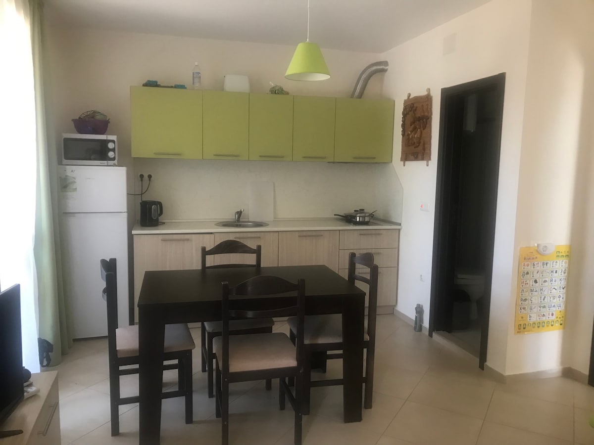 Аппартаменты на 2 этаже с красивым видом на бассейн, имеется терасса. До моря 10 минут пешком. В квартире могут с комфортом разместиться двое взрослых и двое детей. В апартаментах имеется удобная 2-х спальная кровать, диван кровать, детская кроватка, кухня, полностью оборудованная посудой и техникой. Стиральная машина, большой холодильник, микроволновая печь, утюг, гладильная доска, телевизор, фен. Также в наличии два велосипеда, постояльцам предоставляются бесплатно.
