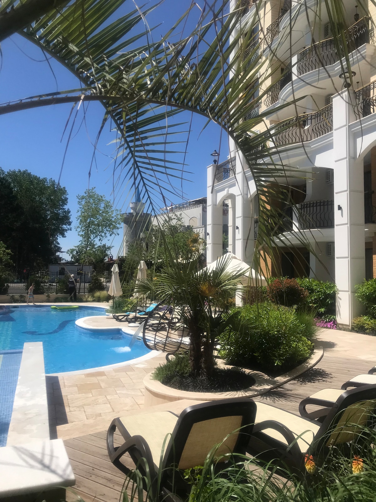 The apartment is situated in the Sunny Beach resort. The beach is only 450m away. Busy district, easy access to main street and the centre with all the communications and places. The popular aquapark is not far. The apartment is fully furnished and equipped, has OWN SEPARATE exit to the swimming pool. The territory is under security. The park zone is nearby, as well as 24/7 supermarket, public transport. To the Nessebar Old town - 10 minutes by bus.