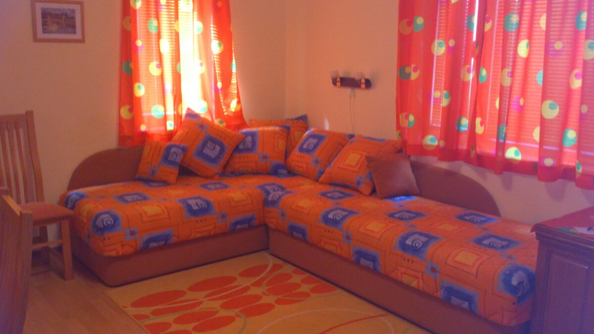 Perfect place for your family's summer holiday! Home comfort and peace in the heart of Sunny beach in a walking distance from the sea, Bus station, shops, restaurants and all the entertainments. Bedroom, living room, full equiped kitchen and a balcony with a pleasant view. Enough space for a family with 1, 2, even 3 children, or for 4 adults. In Central Plaza resort you will find a pool with children section, garden, children playground, security service. Public parking in front of the doors.