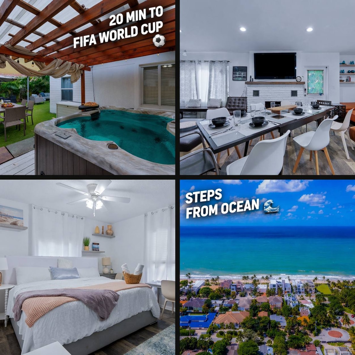 Feel the ocean breeze and settle into a coastal retreat designed for comfort and calm. This spa-inspired home blends wellness and style, offering space to slow down and reconnect. Soak in the Jacuzzi, refresh in the cold plunge, and unwind beneath soft evening lights… Spend your days exploring Fort Lauderdale’s beaches, waterfront dining, and palm-lined streets, then return to a peaceful space that feels curated, private, and effortless. ⏱ 4-minute walk to the beach 🛒 3-minute walk to Publix