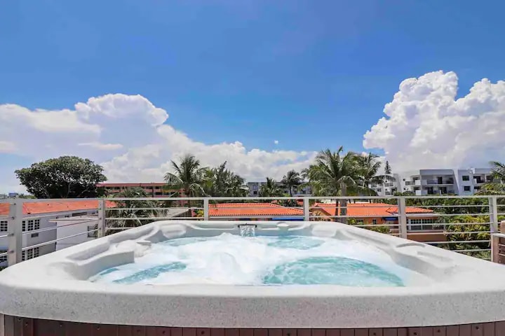 ONLY 2 Minutes away from the beach!!!! 🌴🌞 The perfect getaway for you to enjoy with your family and friends. this amazing 💗home for you and your party! This 3 bedroom, 2 Bathroom Beach House just a 2 minute walk from the beach. This Beach house is equipped with a full size kitchen, spacious open format living room with new private hot tub in the backyard surrounded by tropical landscaping to give you that relaxing . Free parking on the property.you can Share with 10 friends and families .