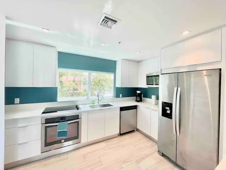 Our Vacation Home on Fort Lauderdale’s Beachfront is a beautifully renovated 3-bedroom, 2-bathroom retreat just steps from the beach. Featuring a spacious master bedroom with pool access, luxurious finishes, and a spa-inspired en suite, this home offers comfort and privacy. Enjoy a heated saltwater pool, cozy patios, and multiple outdoor lounging areas surrounded by tropical greenery. With keyless entry, ductless AC, and secure parking, it’s the perfect getaway for relaxation and convenience.