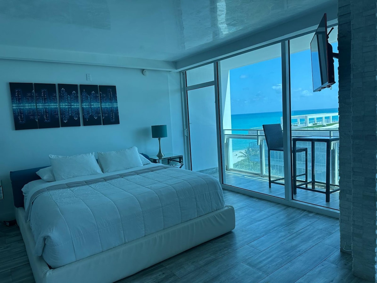 APART HOTEL. 24/7 FRONT DESK. FREE VALET PARKING. OCEAN FRONT VIEW WITH BALCONY, 1 BEDROOM, 1 BATH LOCATED AT A LUXURY OCEAN-FRONT CONDO "MONTE CARLO" ON COLLINS AVE, MIAMI BEACH. UNIT HAS: WI-FI, KING SIZE BED, SLEEPER SOFA, SINGLE SOFA BED, CRIB, 2 TV'S, LAUNDRY, DISHWASHER, FULL KITCHEN AND FREE PARKING! 2 SWIMMING POOLS, JACUZZI, GYM, STEAM ROOM, LOUNGE ROOM DIRECT BEACH ACCESS, LOUNGE CHAIRS AND UMBRELLAS AVAILABLE AT THE BEACH. WI-FI THROUGHOUT THE BUILDING. NETFLIX, HULU.