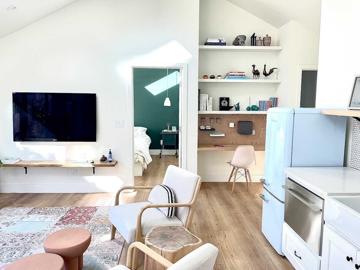 Romantic private retreat with sunny deck & lush greenery Indoor/outdoor living, vaulted ceilings, garden views Gourmet kitchen, gas fireplace, walk-in shower Heated towel rack, aroma & sound therapy Nest-controlled A/C & heat (no shared ducts) Air filtration + eco-friendly cleaning Self check-in/out, fast WiFi Ideal for couples, solo travelers & business trips