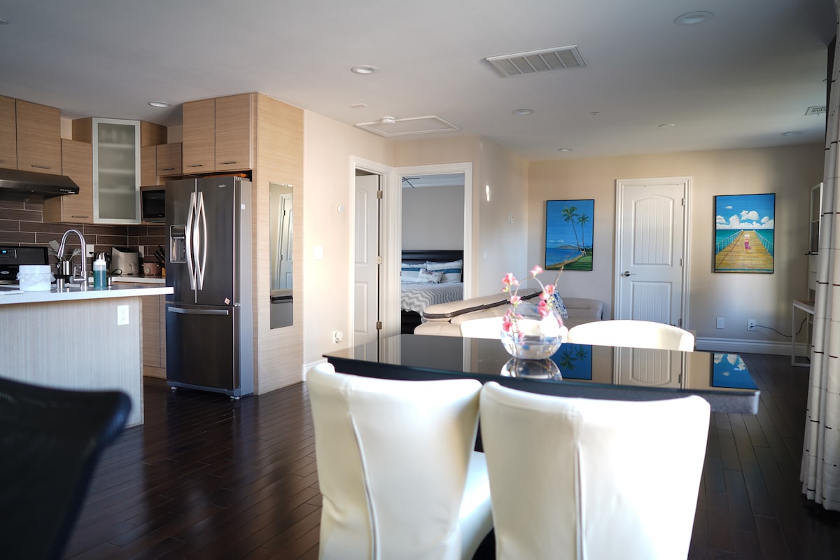 Newly renovated ultra clean designer home in duplex minutes from Apple campus. Highly walkable, the entire home has been recently rebuilt from the studs with new top of the line designer furnishings, kitchen essentials, appliances, and toiletries. **www.accesscupertino.com** for 3d tour of interior and videos. Disney+, Hulu, Cable TV, and Nespresso coffee included during stay with ultra-fast internet up to 500mbps. 5 min to Whole Foods 12 min to Apple Park 20 min to Stanford