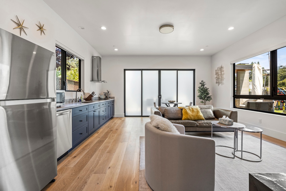 Kick back and relax in this calm, stylish space. Brand new guesthouse build and landscape completed in 2023. Our guesthouse offers a full kitchen, WiFi, self check-in, FREE parking and washer and dryer. Tesla Universal EV charger Level 2 60 amp avilable for guest use. Centrally located in Downtown San Jose. A quick drive to the SJ airport, SAP Center, San Pedro Square, Levi’s Stadium, San Jose State University and Santa Clara University.