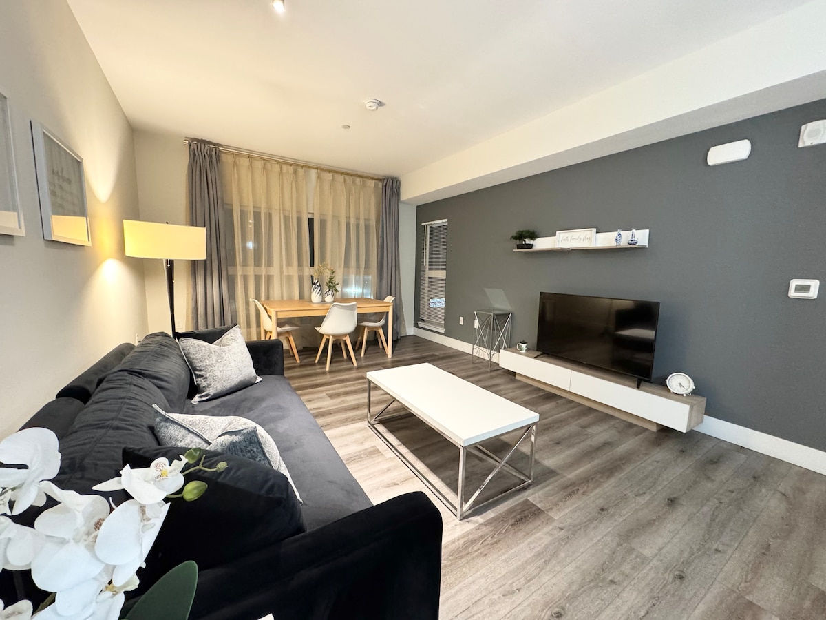 斯坦福附近的现代单卧室豪华房源,配备加大双人床