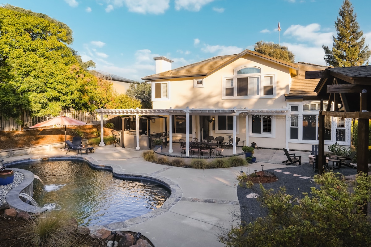 Peaceful Country Retreat with Pond, Waterfall & Stunning Views Escape to a serene countryside retreat just minutes from downtown Pleasanton, San Francisco Premium Outlets, top-rated restaurants, and highways I-680 & I-580. This spacious 3-bedroom, 2-bathroom home sits on a large private property, offering the perfect mix of tranquility and convenience.Take it easy at this unique and tranquil getaway.