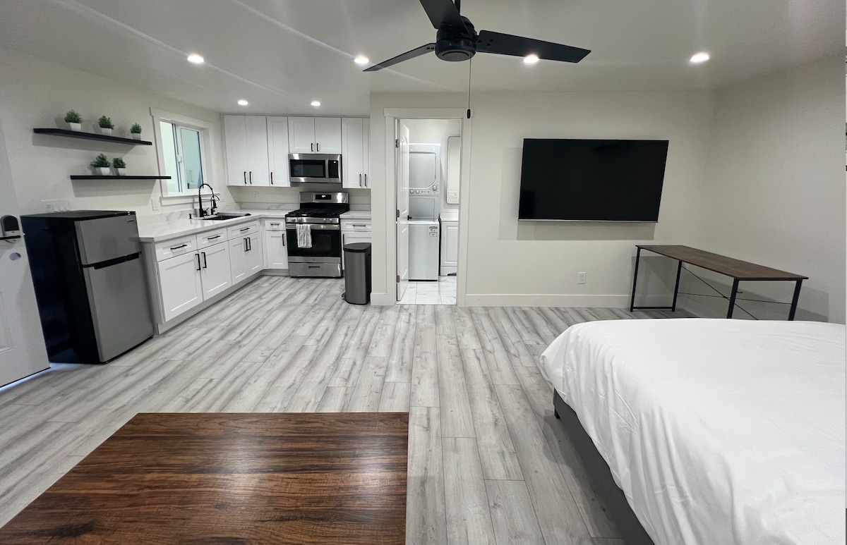 Kick back and relax in this calm, stylish space. Brand new guesthouse build and landscape completed in 2023. Our guesthouse offers a full kitchen, WiFi, self check-in, FREE parking and washer and dryer. Tesla Universal EV charger Level 2 60 amp avilable for guest use. Centrally located in Downtown San Jose. A quick drive to the SJ airport, SAP Center, San Pedro Square, Levi’s Stadium, San Jose State University and Santa Clara University.