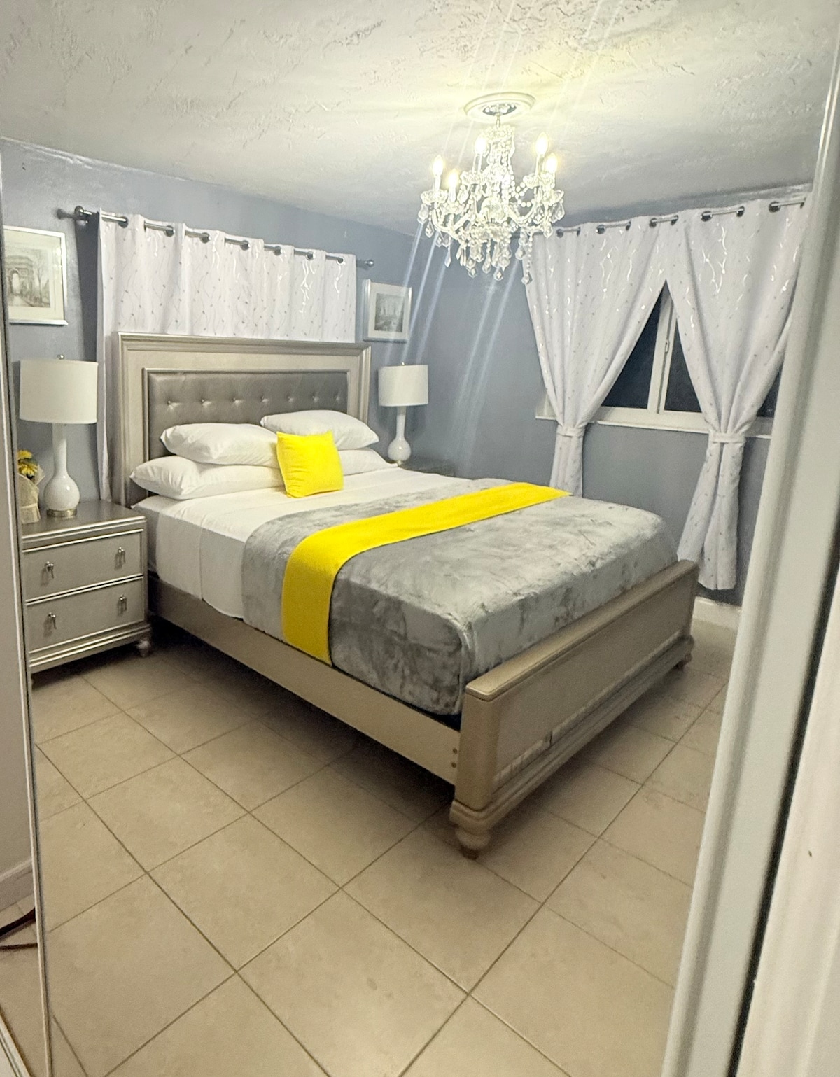 A SUNRISE SUNSET" Located in Sunny Sunrise Florida. This Expertly appointed room/suite dubbed the "Sunrise Sunset" flaunts a private adjoining full bath with an inlay tile stand up shower fit for a king and queen Specifically designed with the Airbnb guest in mind, this room sports a luxurious queen bed perfect for sleeping 2. This nights sleep will have you falling into a cloud of comfort as you peacefully sleep a top carefully selected top of the line linens and bedding.