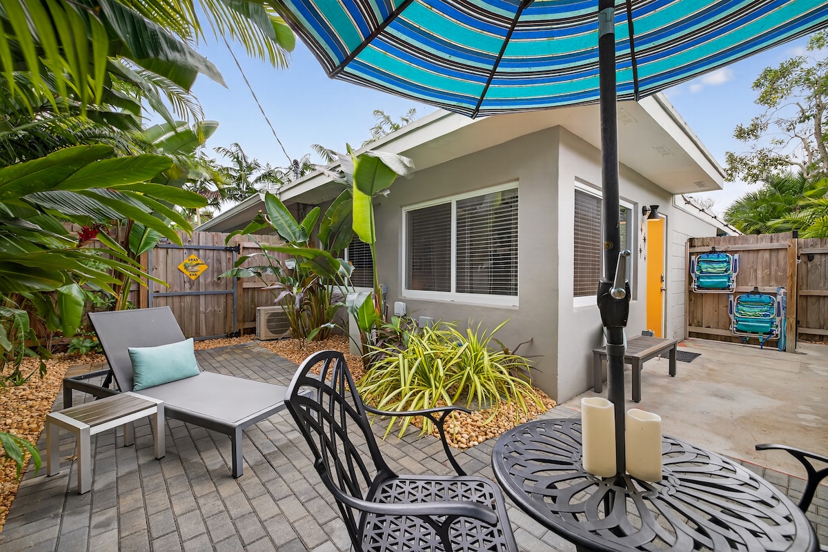 Romantic, clean, private and quiet: perfect to relax after a day at the beach or work. Modern décor, high end appliances and furniture, 85" Samsung smart TV with Bose soundbar, private back porch with grill. Just 3 miles from the beach and 1 mile from main highway i95 and 1 mile from Wilton Manors. Walking distance to grocery stores, bars and restaurants.