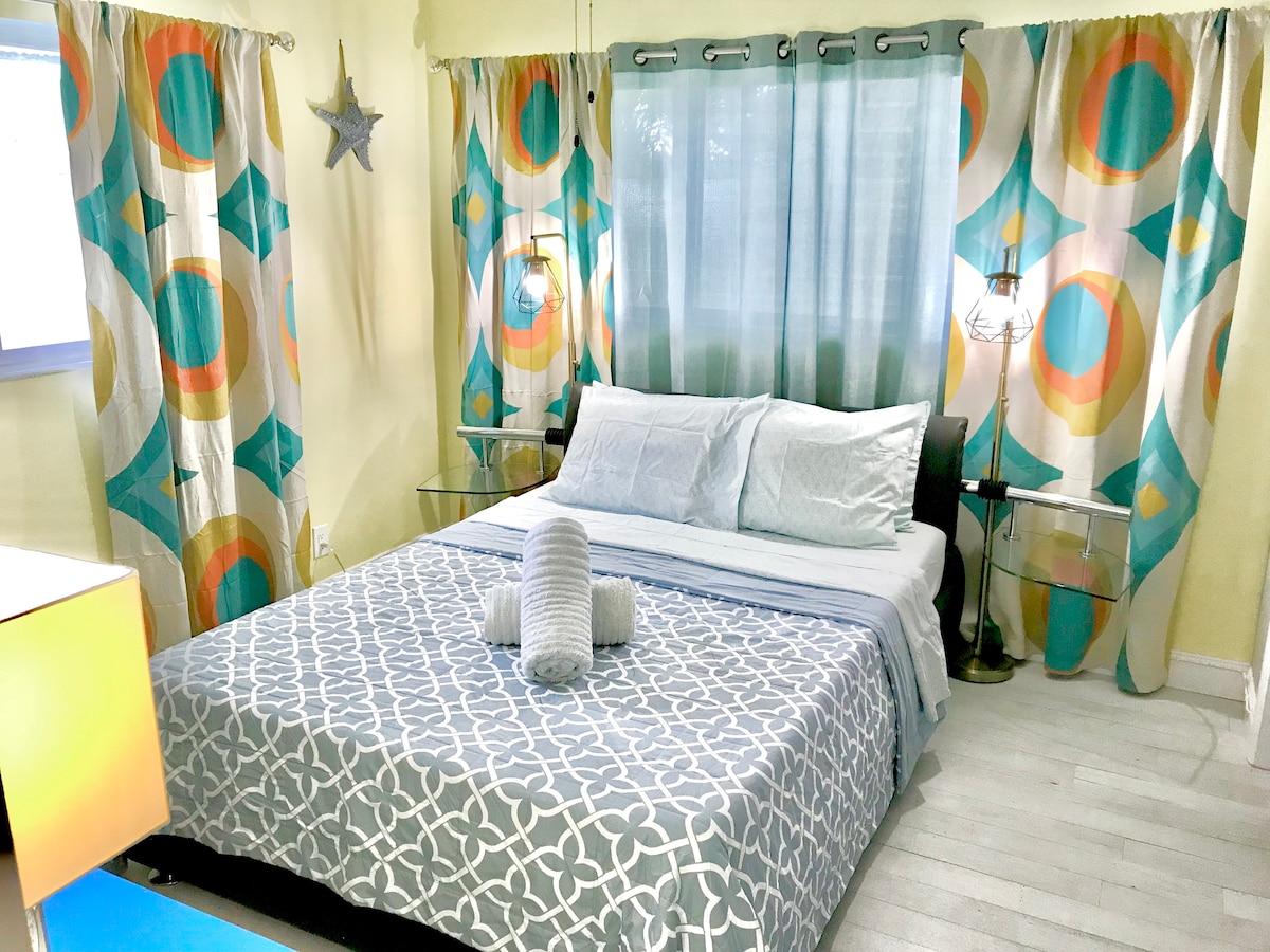 Romantic, clean, private and quiet: perfect to relax after a day at the beach or work. Modern décor, high end appliances and furniture, 85" Samsung smart TV with Bose soundbar, private back porch with grill. Just 3 miles from the beach and 1 mile from main highway i95 and 1 mile from Wilton Manors. Walking distance to grocery stores, bars and restaurants.