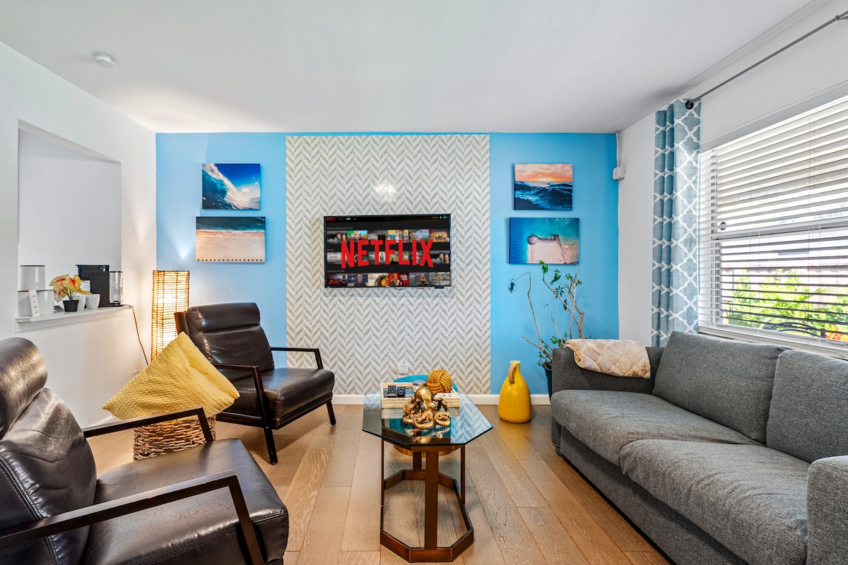 Romantic, clean, private and quiet: perfect to relax after a day at the beach or work. Modern décor, high end appliances and furniture, 85" Samsung smart TV with Bose soundbar, private back porch with grill. Just 3 miles from the beach and 1 mile from main highway i95 and 1 mile from Wilton Manors. Walking distance to grocery stores, bars and restaurants.