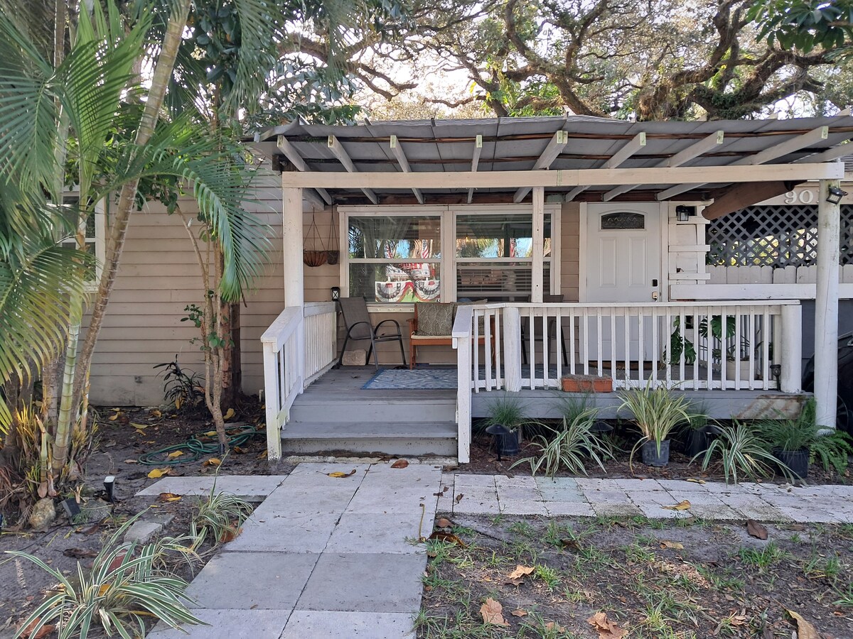 Tastefully refurbished in 2022 and ready to provide guests with a fabulous, Florida vacation experience. The tropical rear yard backs up to a scenic waterway enjoying picturesque boat & water views. The evening sunsets are frequently spectacular. You will love watching the Manatees and fish play & feed from the private dock. The beach is a short stroll way. Laced with nautical accents and shiplap. Open plan living area and kitchen. 3 beds, 2 bathrooms (2 toilets no tub) Ample parking.