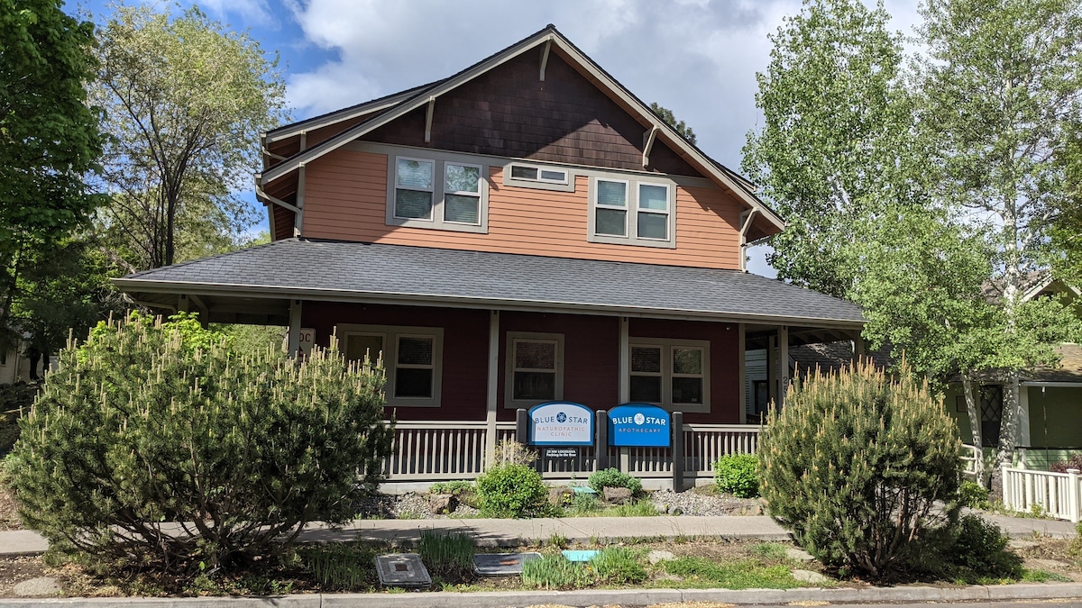 Location & amenities can’t be beat. Across from the river, downtown and close to the Old Mill District. This historic property was home to Bend’s first maternity hospital and has been lovingly converted into unique units. We provide cruiser bikes, rafts for the river and everything you’ll need for a comfortable stay. Off street parking is available for you in the covered carport. Close to all the action you won’t need your car yet quiet and peaceful. SORRY NO PETS/NO SMOKING