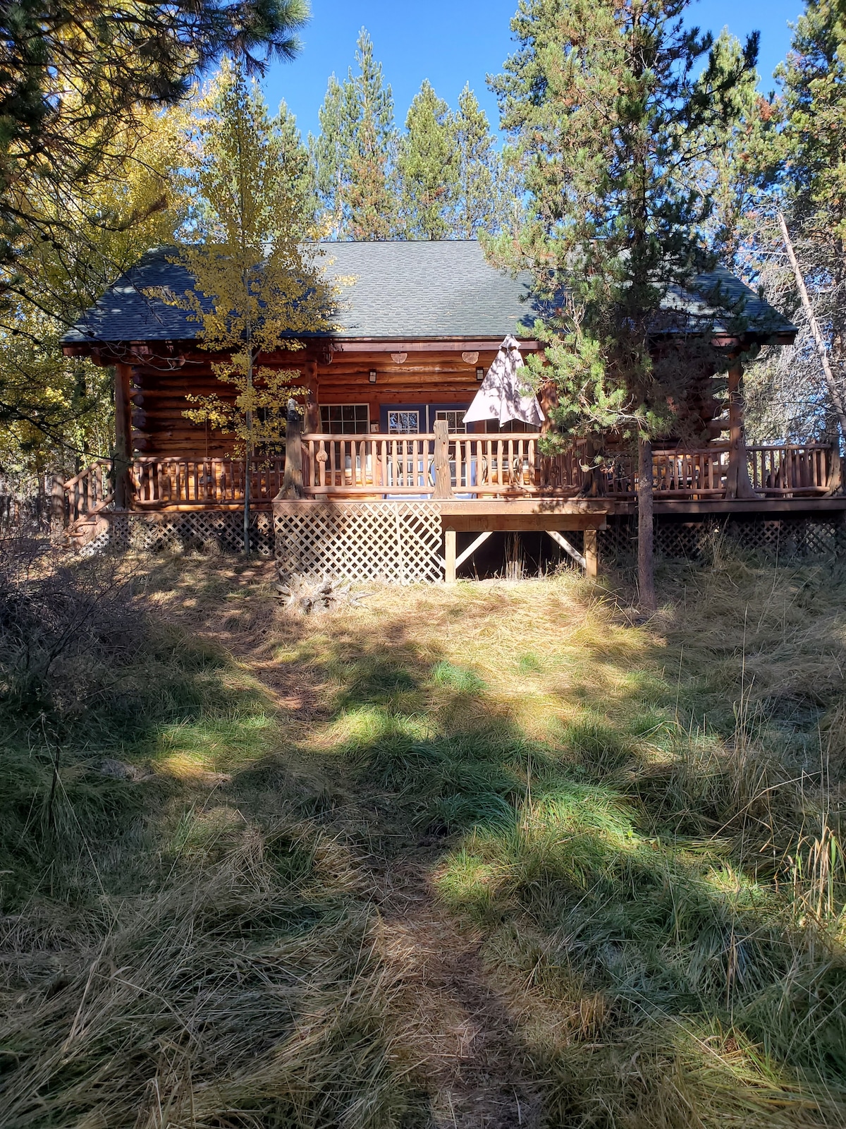 Our tiny log cabin is a cozy getaway, close to hiking, mountain biking, and cross country skiing but only 10 miles from the amenities of Bend Oregon. It is a rustic place, with modern touches, like a gas range, refrigerator, and a gas fireplace. The bathroom is detached from the cabin - steps from the door. It is fully equipped with plumbing and a shower. Our place is perfect for people who love the outdoors with the comforts of home. No children under the age of 12 -- And alas, No Pets.