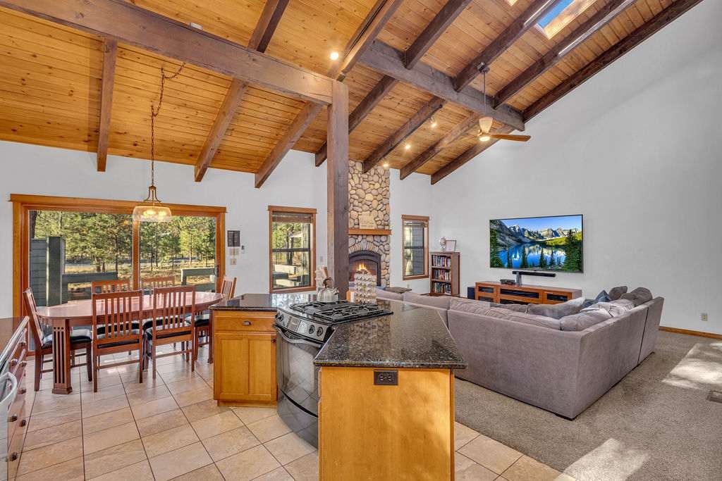 This custom 21st century northwest style house is on a quiet dead end road above the Deschutes River about a 10min drive to Old Mill, surrounded by ponderosa pine trees. This premium house has tasteful decor and gorgeous wood accents. Natural light streams in from the wall of windows in the great room. The house features a full open kitchen with concrete counter tops, a large wood burning fireplace, hardwood floors, and a spacious deck.