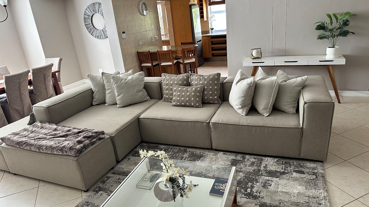 Lounge, with ocean views features large 65 inch TV with local cable (DSTV), Netflix & new, centrally controlled indoor and outdoor music system.