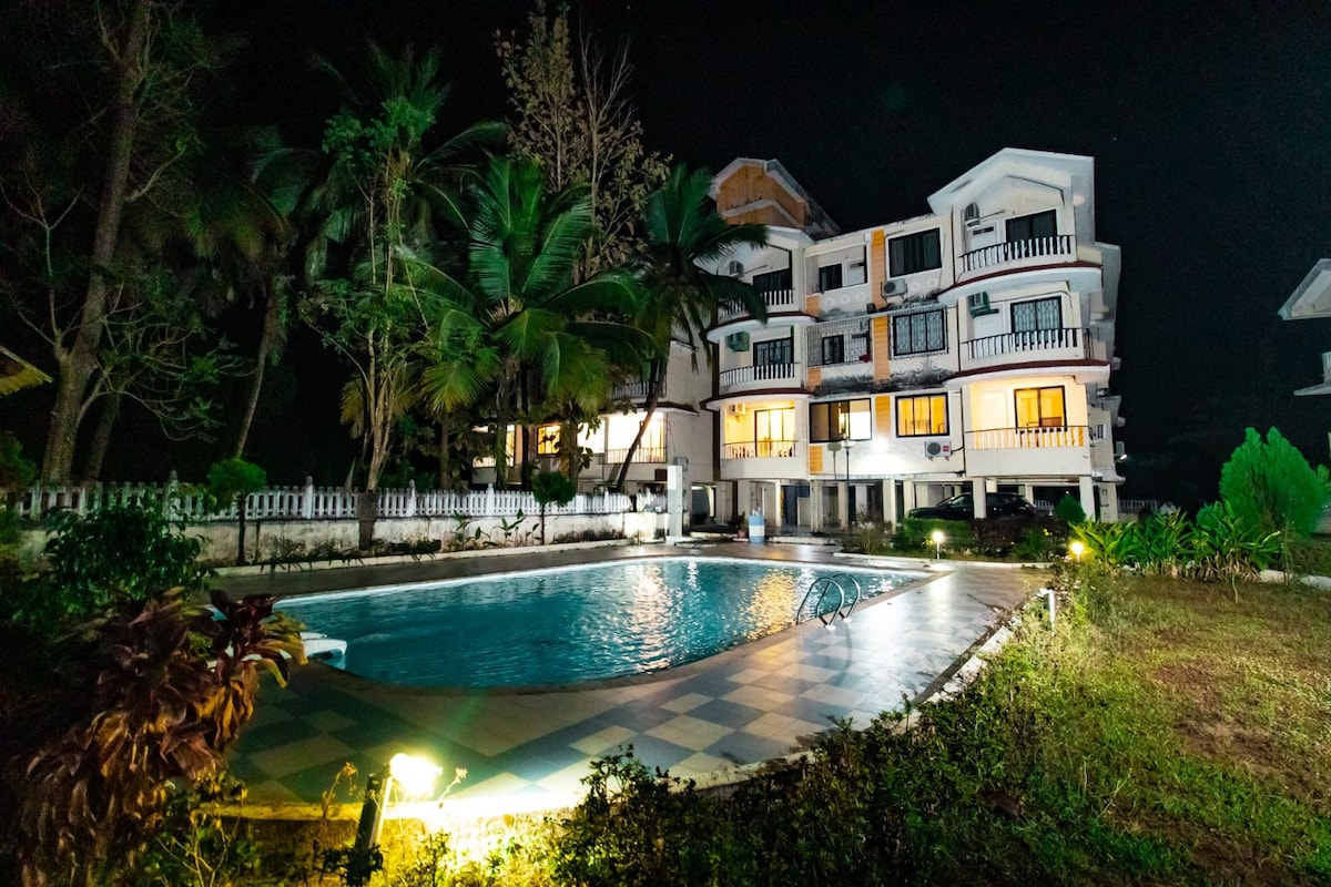 Escape to your beachside haven 3 minutes from Majorda's white sands - a charm to sun-seekers from Europe & Russia Your cozy apartment boasts a kids-friendly pool, a well-stocked kitchen & serene surroundings You will Luxuriate in plush beds with AC in all rooms, Embark on beach walk with breeze in your hair or Couple dance under stars to live Goan serenades For memories that will stay for a lifetime, book your dream beach holiday - it awaits you! At this rare & cozy home nearest to Majorda Beach