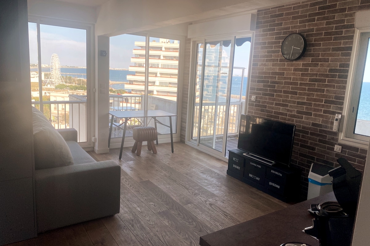 Je vous propose mon cocon de bord de mer avec des prestations haut de gamme et grande piscine de copropriété (01/06 ->15/09) Posez votre voiture sur la place de parking incluse et profitez de la Grande Motte à pied ou à vélo (2 vélos adulte mis à disposition). Plage, parc, toutes les activités et commerces sont à proximité (5 min max) L'appartement qui est situé à l'étage d'une villa a été réalisé avec des installations haut de gamme. A 15 min de Montpellier (Aéroport/gares) et de la camargue