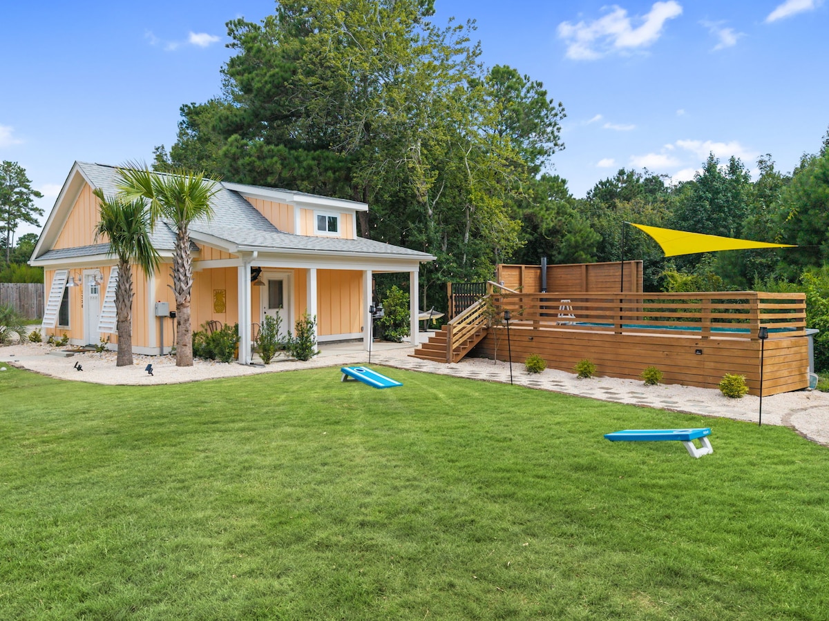 This house is anything but tiny! Located in a wooded area 6 miles from Sunset and Ocean Isle Beach, Coral Oak is perfect for those who love to visit the beach but don’t want to stay in the crazy traffic. This house is located right in the middle of Wilmington and Myrtle Beach. You can enjoy all the seafood Calabash has to offer and even WALK to the Silver Coast Winery. This house has some special details so make sure to take the time to check it all out!