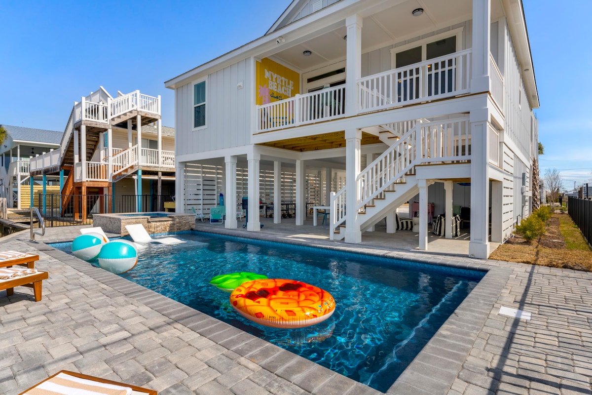 Heated Pool, Hot Tub, Firepit, 6 min walk to beach