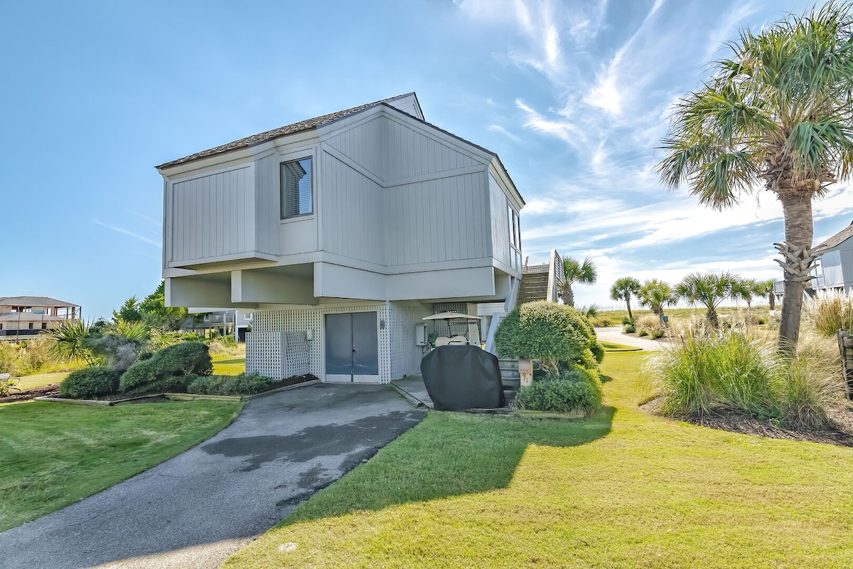 3 bed, 2 bath home, sleeps 8 easily. Large deck on 1st level with lots of room to relax. New outdoor gas grill, entertainment area under the house with a tv and an outside shower There is 1 King, 2 Queen beds and a pull out sleeper sofa (full). All bedrooms have smart TVs. The kitchen is stocked with everyday appliances, pots, dishes, etc. House has a washer/dryer & dishwasher. WiFi & complimentary golf cart are included. 9 guest max. No Pets. Must be 25 to rent. Linens can be added for $150