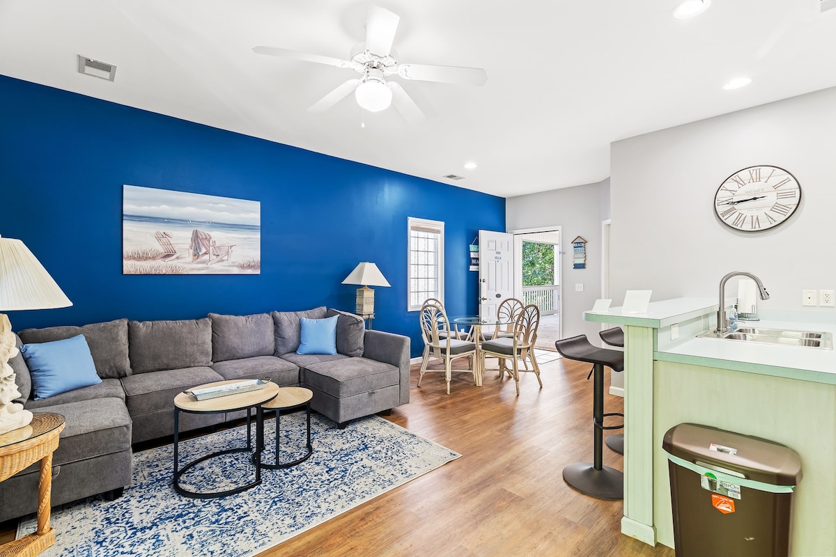 This centrally-located, dog-friendly, single-level home will have you creating perfect days in no time! Newly remodeled in 2022. Less than 2 miles to the beach, minutes away from restaurants, and several golf courses within reach! Inside you will find hardwood floors, an open living/kitchen area with plenty of room to gather, and a charming adjacent room that includes a table that seats six. TVs in every room with streaming, and Serta mattresses to ensure a blissful nights sleep!