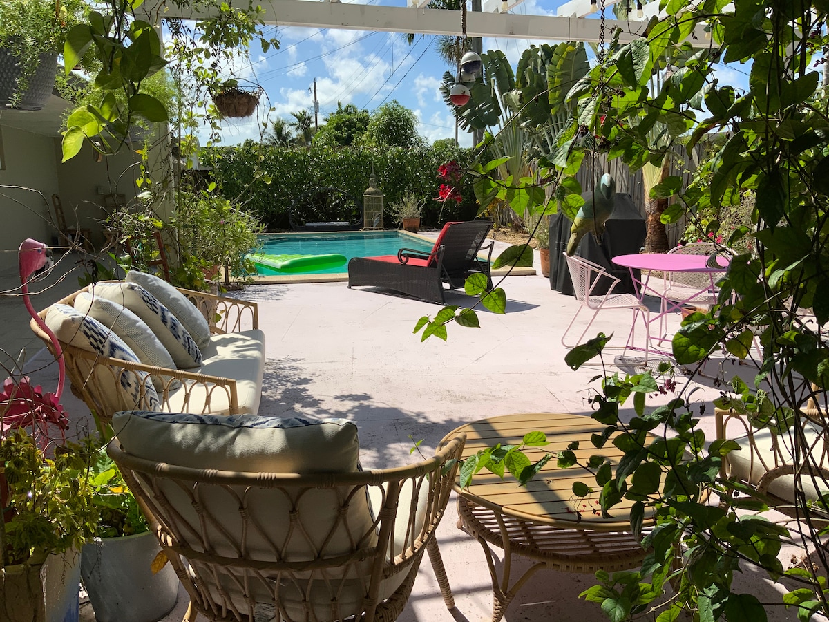 Tropical oasis centrally located between Miami Beach and Key Largo. Although you may never want to leave. The cozy casita with private bath and balcony is tucked away, surrounded by lush vegetation and sounds of the waterfall. Take a dip in the pool or grotto, relax with an afternoon cocktail under the tiki hut, or snooze in the hammock. During those cooler months soak in the hot tub. We have bikes available to cruise the miles of nearby paths stretching from Coconut Grove to Black Point Marina.