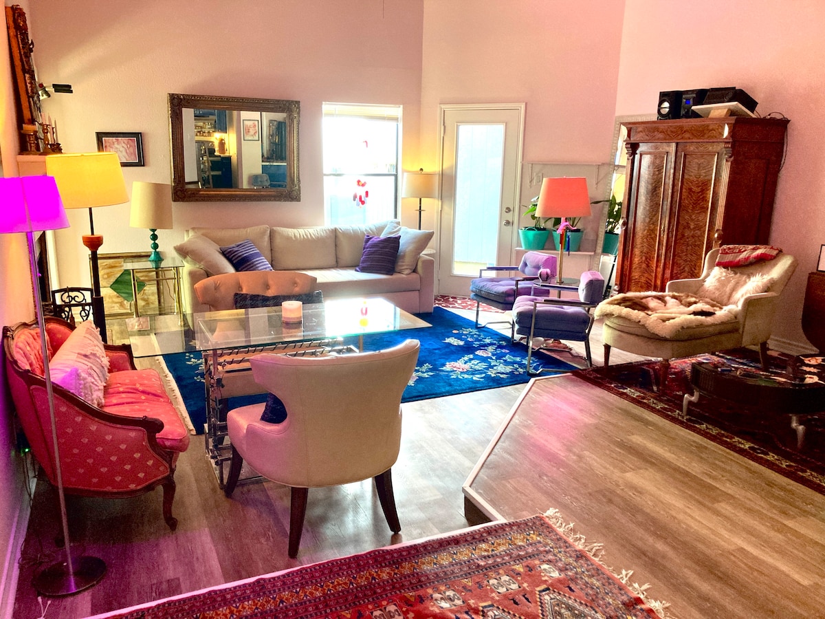 Perfect South Austin retreat just minutes away from the vibrant South Congress, trendy South Lamar, iconic Barton Springs, scenic Lady Bird Lake, and the heart of Downtown along with free parking. Inside, you'll find a spacious bedroom featuring a luxurious California king bed and ample closet storage. Large widows for natural light (curtains are on all windows for privacy) . For additional sleeping space, the cozy living room includes a convenient pullout queen bed from the comfortable couch.