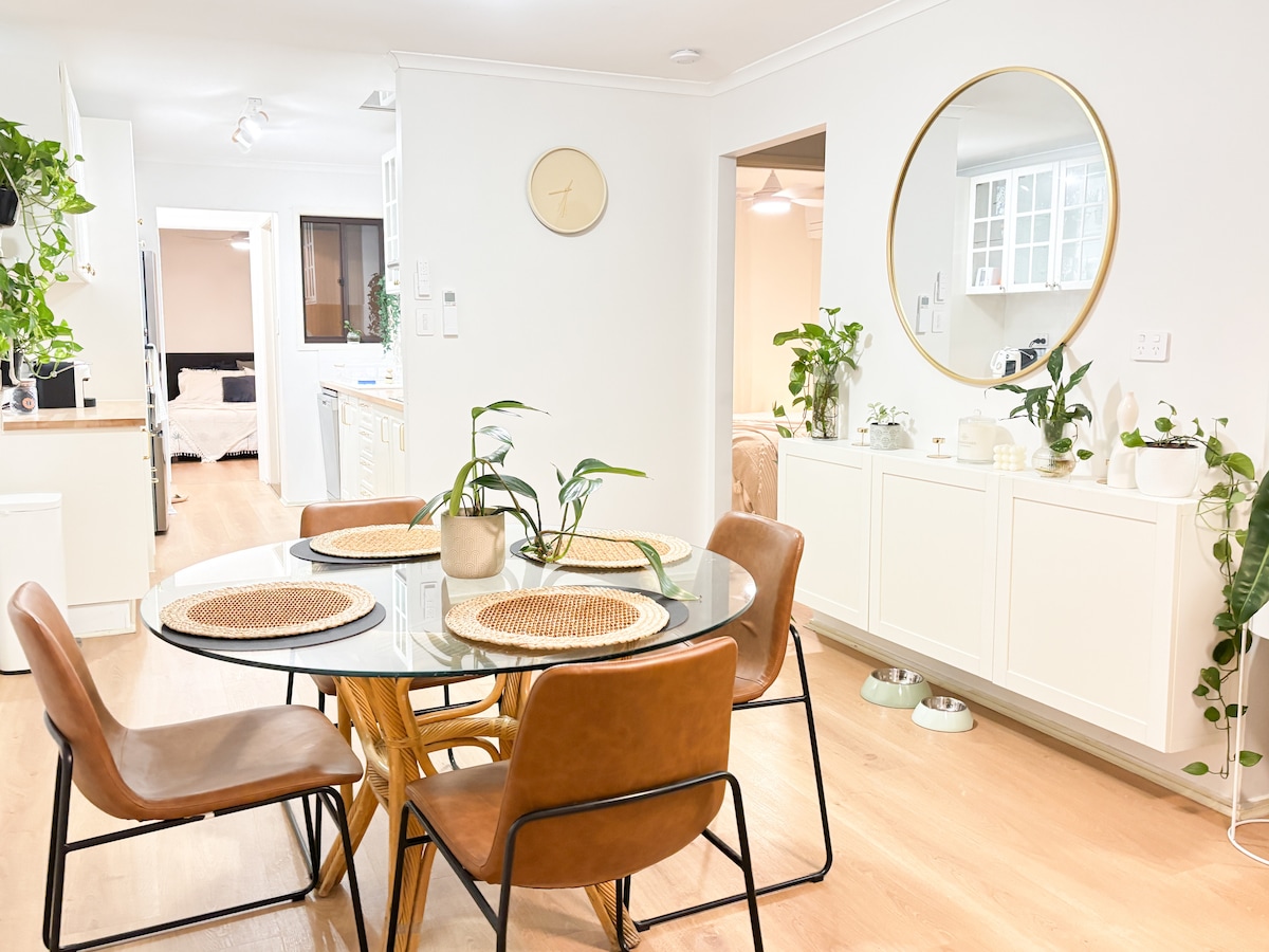 Location location! This gorgeous, freshly renovated 3 bedroom, 3 bathroom Noosa home sleeps up to 6. With a private pool, garden & walking distance to Noosa's best attractions this home ticks all the boxes. With a separate unit downstairs, travel with friends or family (take the grandparents!) while enjoying your own space. Walk to a great selection of restaurants, there is no need for a car. Beautifully furnished, comfortable beds, BBQ, Netflix & WiFi!