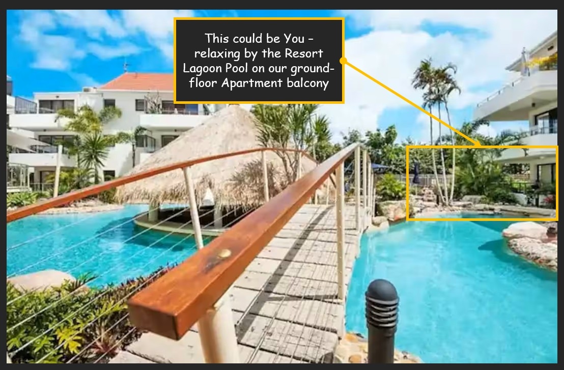 A Stylish, light and airy retreat set in tropical gardens in South Pacific Resort, with a secluded lagoon style pool just a few steps from the door. Peaceful and private, our spacious apartment enjoys all the facilities of a first class resort including 4 pools, a tennis court and a Thai Restaurant. The apartment is in a quiet part of the resort away from the hustle and bustle. Just a few minutes walk to shops, cafes and great restaurants.